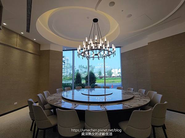 位在一樓的威尼斯西餐廳,以淡木質為主色系,搭配粉墨綠的椅墊;吊燈非常簡約、不浮誇,清新又自然。