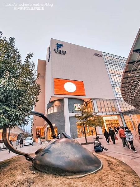 走出車站外,東出口、鼓門&公車站旁邊,大大的建築就是FORUS百貨,在隔壁而已,連過紅線燈都不用。