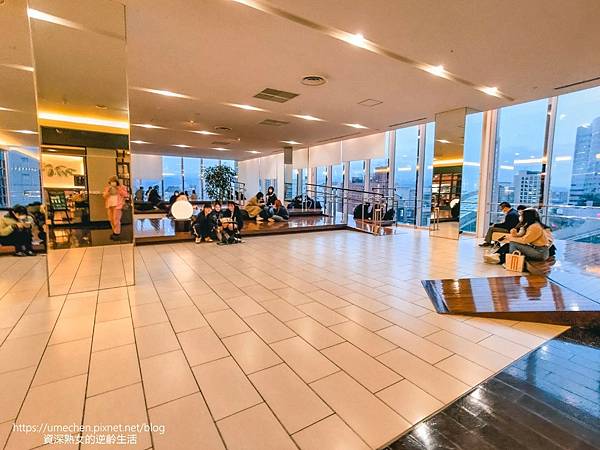 如果沒在7樓Sabrina cafe&terrace用餐,還有一處6樓室內的公共休息區,可以拍市景,很多年輕人在這裡聊天、滑手機。這裡可由高處拍到金澤車站、東出口的款待圓頂、環狀車站&金澤市容。