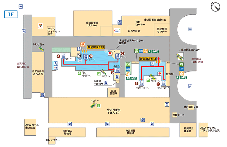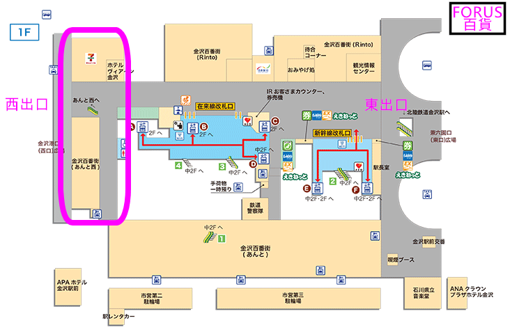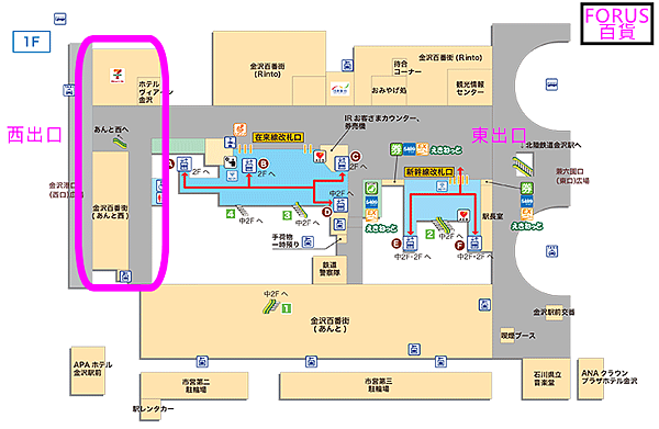 因為我們住在金澤車站西出口步程4分鐘的酒店,故由西出口進入,以下介紹也是由西出口至東出口的方向。