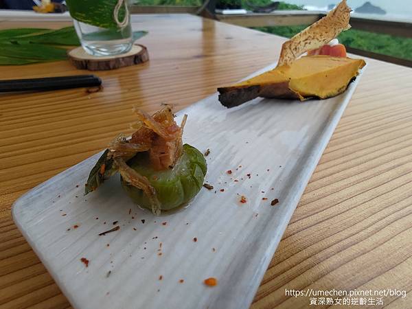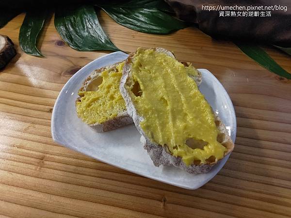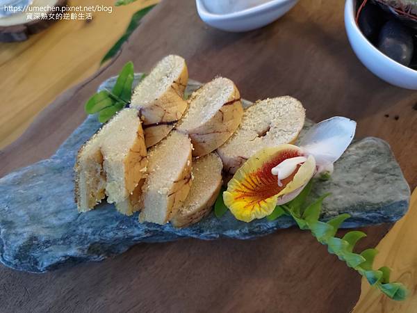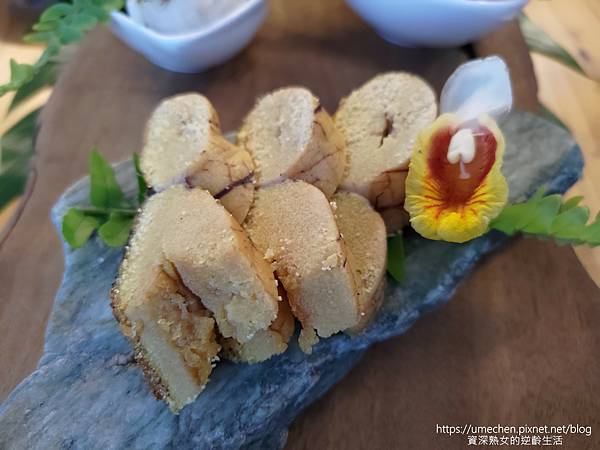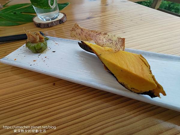 中間的地瓜,密度紮實,也是在地部落所種植,直接清蒸,味道最原始,那甜味也最天然。上面那一片也是在地生產的芋頭。