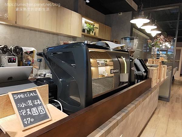 一進門的左邊是櫃檯、甜點櫃與料理區,可看到當天提供的起司蛋糕、達克瓦茲、潛艇堡、可頌……等甜點麵包,當然也可看MENU點餐。