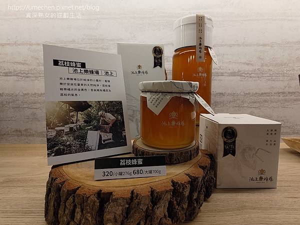 這杯拿鐵的甜味,就是使用開放櫃有展售的池上樂蜂場的荔枝蜂蜜。