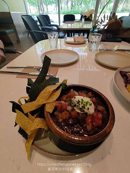 燉得非常入味的牛肉,由蕃茄、莎莎醬、墨西哥香料共同燉煮,送上桌之前再擠上一份酸奶。