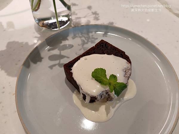 常態供應的甜點有乳酪蛋糕、核棗蛋糕、瑞可塔起司水果煎餅等。看照片中的這塊蛋糕,有感受到它的濕潤度與柔軟度嗎?