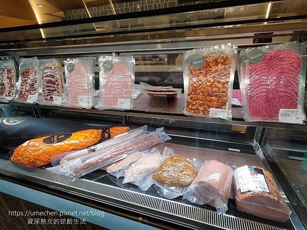 與櫃檯連續的玻璃櫃,置放歐洲的精選乳酪起司、火腿煙燻肉品,可依需求適量購買,喜歡歐陸飲食文化的朋友,一定會很愛這裡。