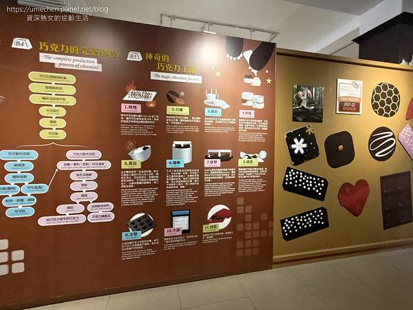 四周牆面有巧克力的完整製程;可可樹的探索;巧克力的起源……等介紹與導覽。