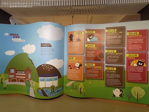 導覽區首先介紹巧克力雲莊與歷程,由2000年至今的各階段,以翻開的書頁來呈現,視覺上相當舒服,也可以當做美拍的背景。