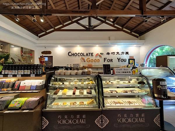 另一半區域為輕食、甜點店,也有賣多款巧克力、啤酒、蛋糕與甜點。這裡只是展售部份,最大的賣場在巧克力夢想館唷!