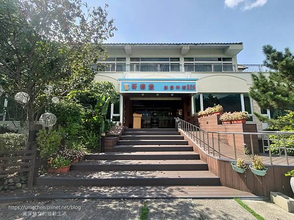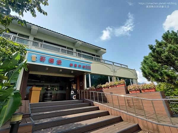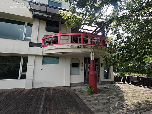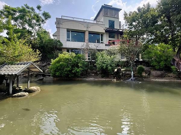 後來到旁邊的生態池散步時,發現歌德堡餐廳入口實為2樓,靠近生態池這邊,就可以看到1樓。1樓建築的柱子,是酒瓶造型,下次來這裡不妨關注一下。