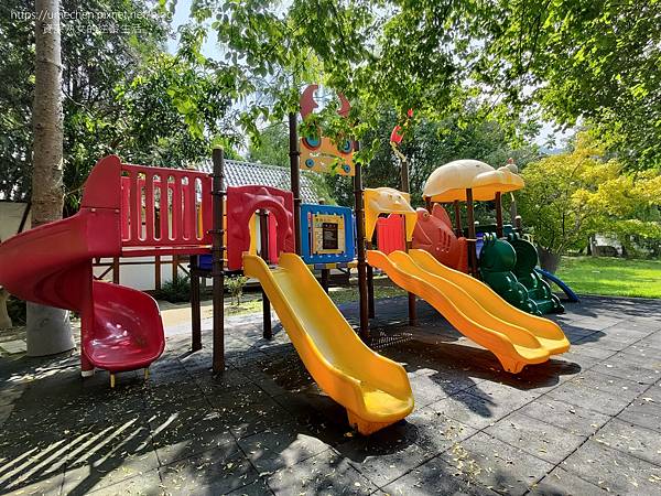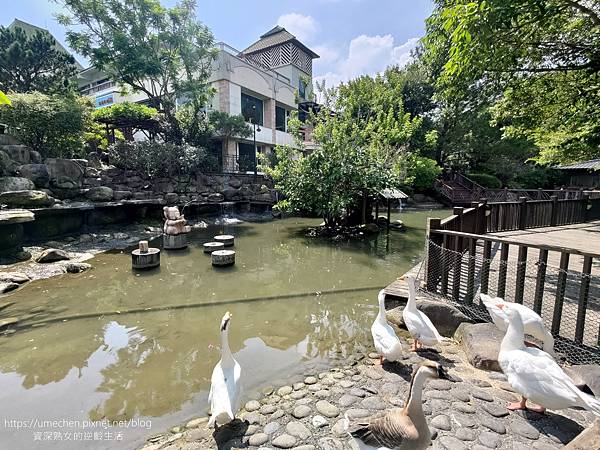 池裡有魚兒游來游去,還有成群的活潑鴨子,小朋友一定會喜歡。