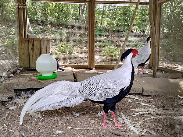 喜愛動物的朋友,在巧克力夢想館的後方樹林裡,還有圈養鳥類:白鷴。白色羽毛上有黑色條紋,是優雅的紳士。