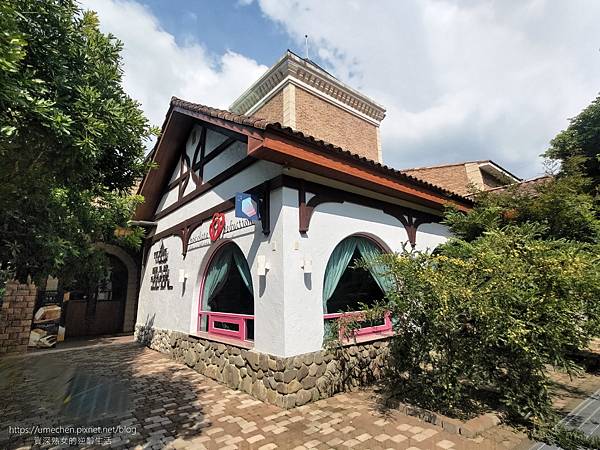 從馬路看到的城堡就是巧克力故事館,造訪時為豔陽藍天,白色牆面、歐風建築風格,城堡拍起來好美呀!
