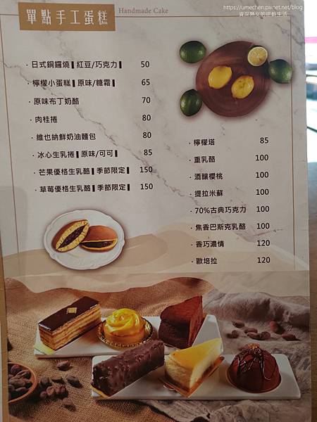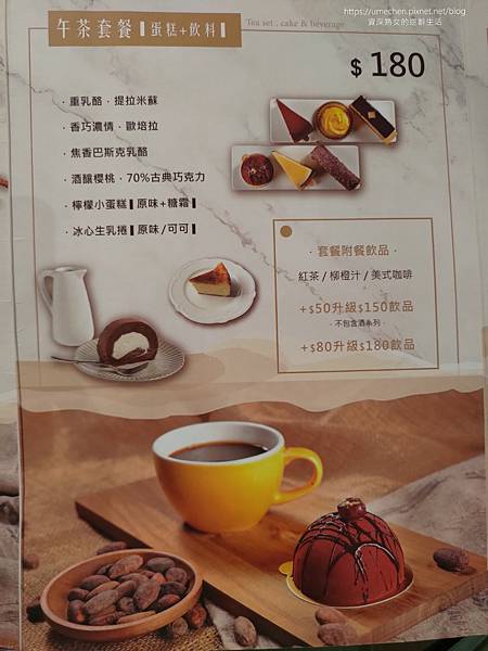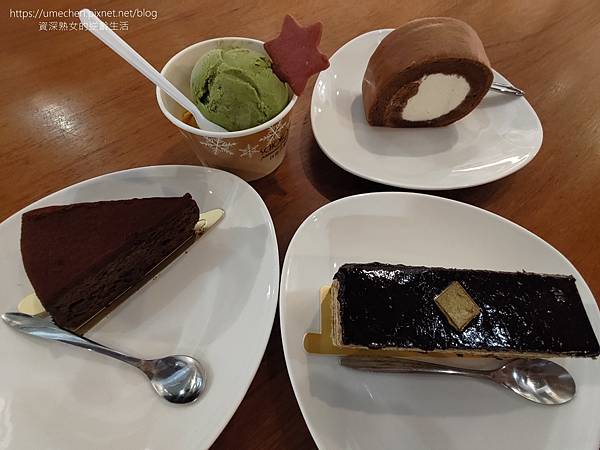看著玻璃櫃的實品,點了:古典巧克力、歐培拉、可可生乳捲 這3款甜點;另外看MENU點了抹茶冰淇淋、巧克力啤酒。
