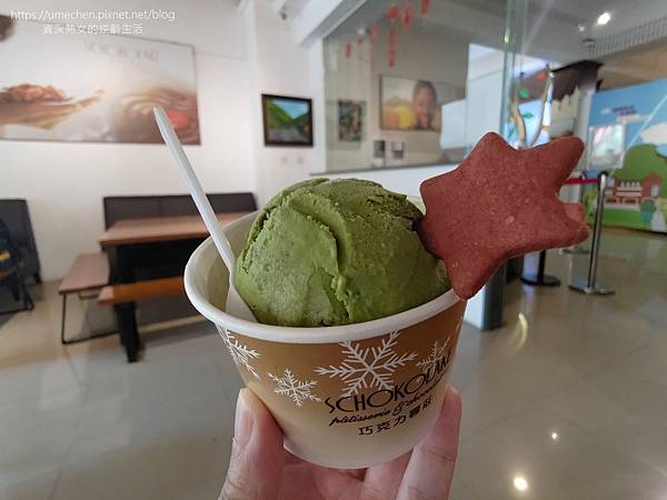 抹茶冰淇淋搭配了粉嫰對比色的星星餅乾,好吃又好看。