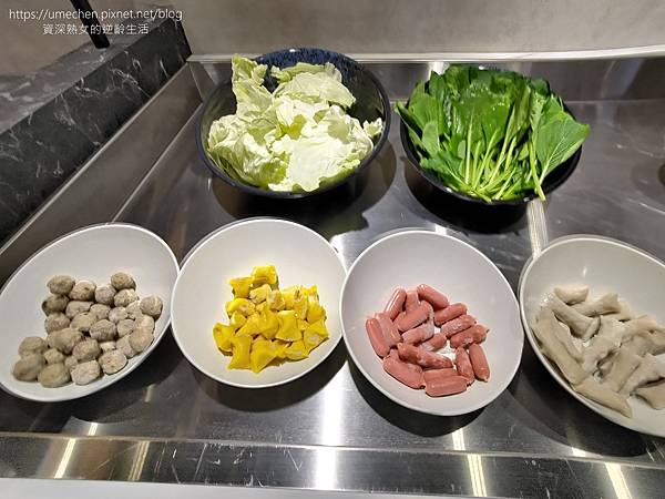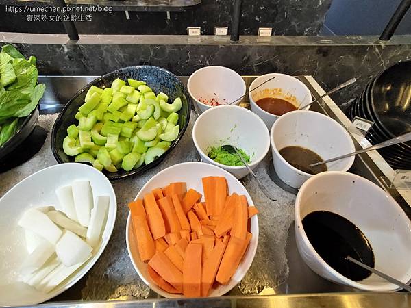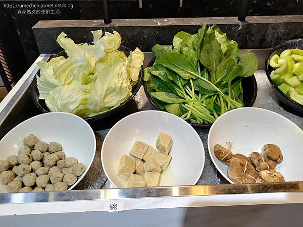 1、2樓都有自助吧,但2個樓層品項不大一樣,一個樓層品項大約7~8種,但2樓都走一下,火鍋料、蔬菜看起來就變多了。