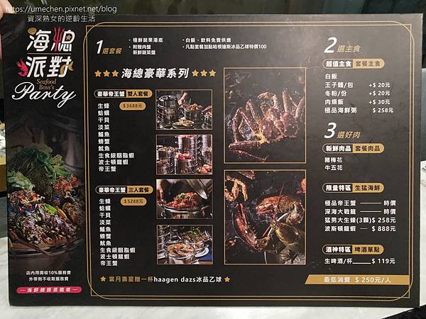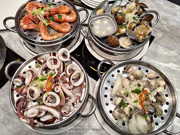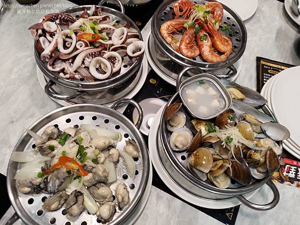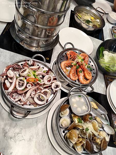 海鮮等級、品項可自選,即然來了直接最豪華上桌,帝王蟹、波士頓龍蝦、生蠔…等,桌上擺滿滿的,真的吃得超開心,也非常飽足。