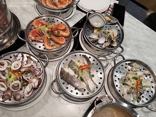 火鍋肉盤選擇只有豬梅花、牛五花,選項雖少,其實不太重要,因為這裡海鮮為大。