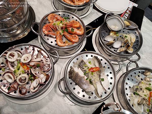 每一樣海鮮都夠新鮮,魷魚圈都蒸得剛剛好、蛤蜊很大顆、鯛魚肉超Q彈。