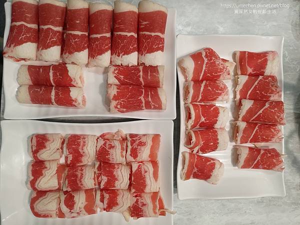只有2種肉,當然全部點起來。豬梅花、牛五花都是瘦中帶肥的肉品,是我喜歡的那種,不會乾澀,有油脂滋潤,肉片吃起來更順口。
