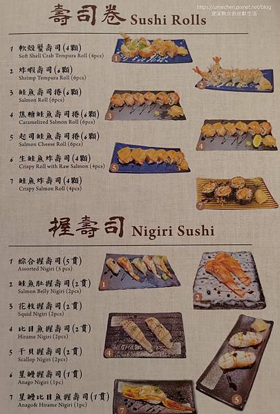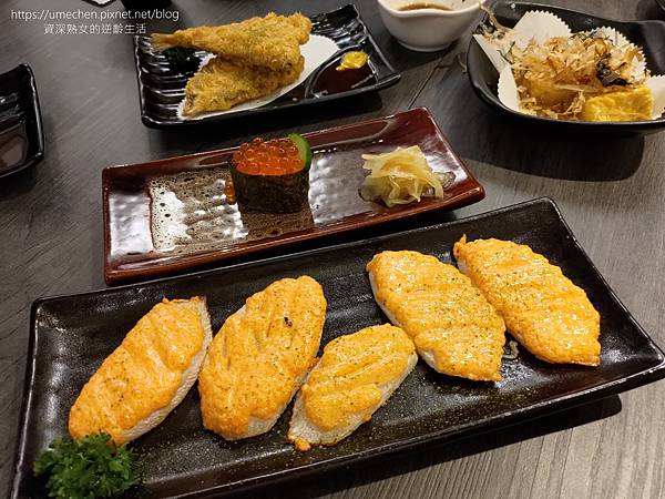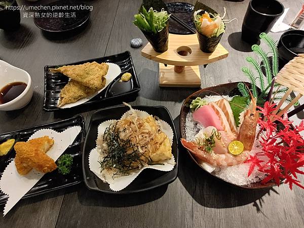 丼飯定食、壽司、手捲、烤物、生魚片…等,三姊妹除了丼飯定食留待下次品嚐,其他品項都挑了1~2樣來試試。