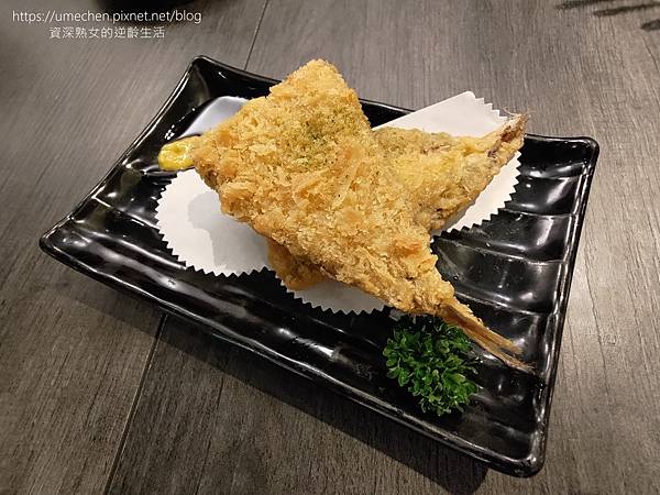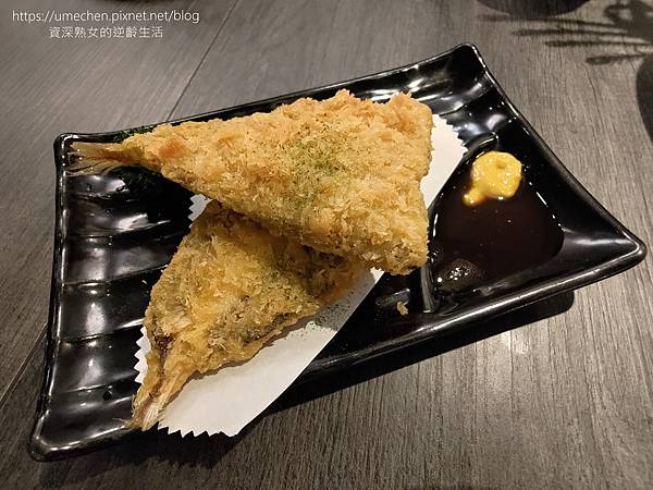 炸魚端上桌後,哈!真的和日劇裡的一模一樣,直接重溫劇情。第一次吃竹筴魚,剛炸好,好好吃唷!