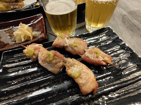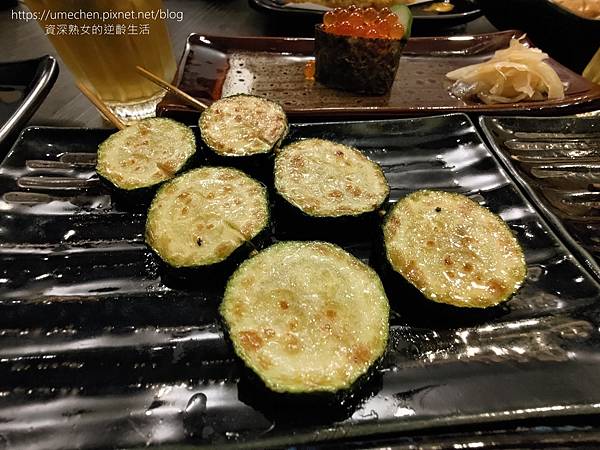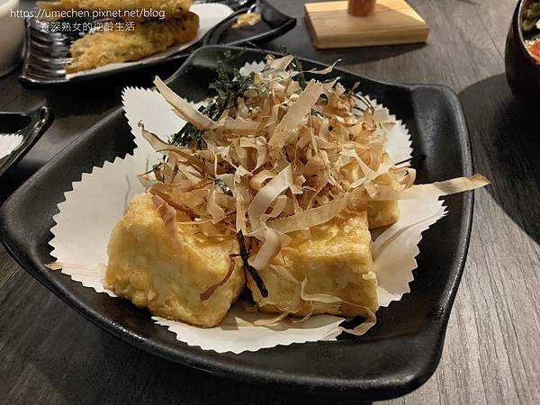我們還點了 揚出豆腐、烤奶油櫛瓜、雞肉串,總共12個品項,滿桌佳餚,每人500元多一點點,這價位我很能接受。