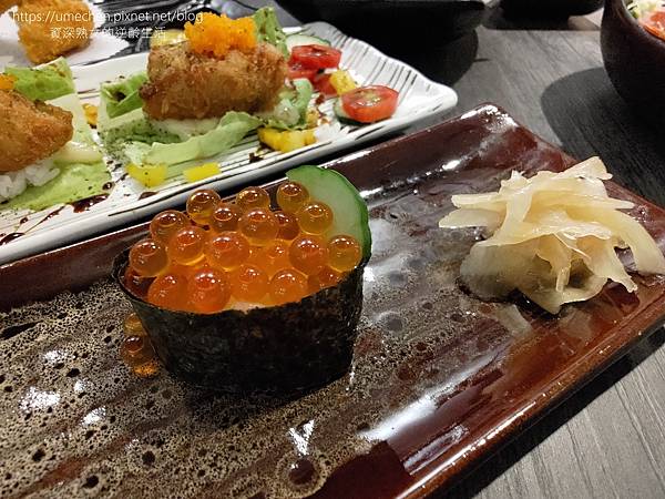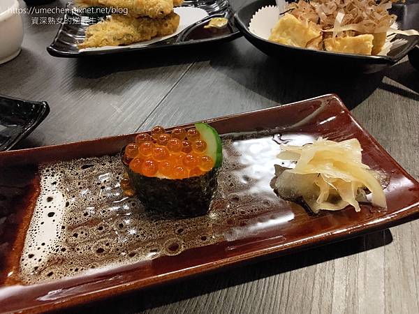 相較綜合握壽司的搶眼與搶戲,我先吃握壽司、再食一個軍艦,如黃金般的軍艦,敗陣了下來,可能先後順序的非戰之罪吧!