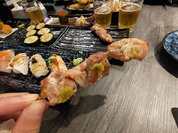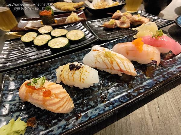 綜合滿桌的佳餚食用心得,除了烤雞肉串比較吃不出嫰感,被我扣了點小分數,其他每一道都相當新鮮美味。牡蠣蘿蔓、明太子山藥、握壽司&綜合生魚片,都獲得了我的高分評價。