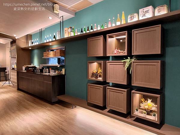 出餐櫃檯及旁邊的牆面,以凸出的木箱組成九宮格狀,以墨綠為底,十分好看,是我個人認為翰食堂最美的角落。