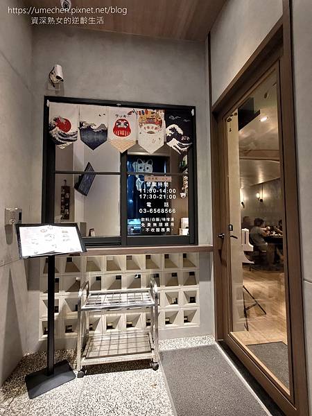 因為清水模的牆面,讓這片網美牆變得耐看。我更喜歡與一旁牆面單人坐位共同組合成的區域,後來吃完飯結帳後,看到無人坐在大門旁的單人坐位區,突然迷上了這個角度,愈看愈有味道。