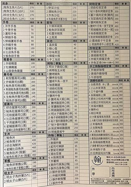 因為冊子式的菜單沒有單價,所以後來我們只看表格式菜單,才能一目瞭然每個種類點了幾樣、冷熱食或生食類是平衡……之類的。