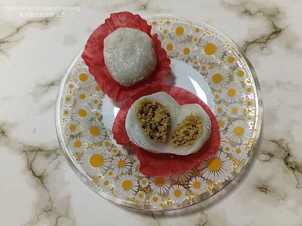 紅豆麻糬是帶餡麻糬的基本款,大元的紅豆煮成綿密的豆沙泥,已看不到紅豆原型,算是比較中規中矩的表現,還不錯吃。