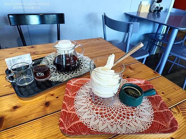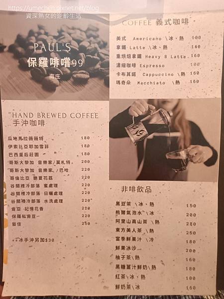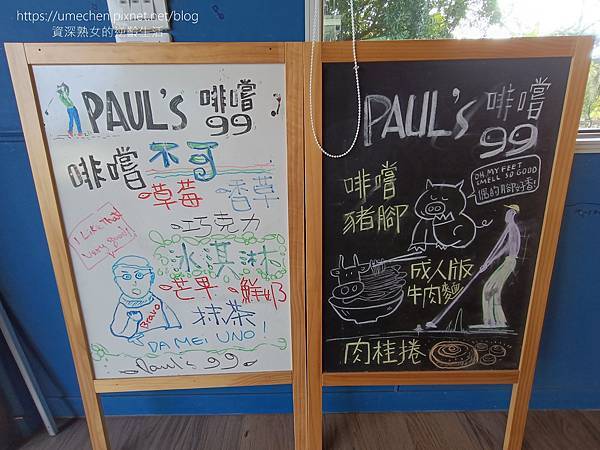 雖然事前已知PAUL'S啡嚐99的滷豬腳、牛肉麵很受好評,最後還是點了咖啡、甜點,誰叫我們吃完午餐才從三灣過來,嘻!