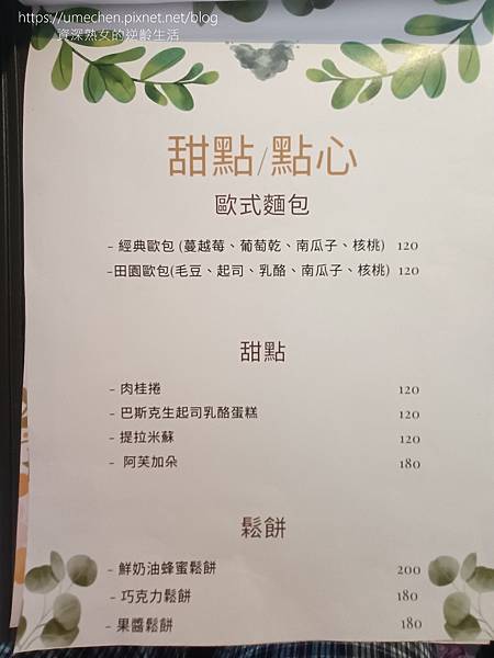 烘焙甜點是女主人巧手,有歐式麵包、多款甜點&鬆餅。