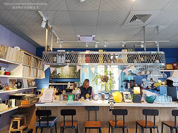 吧台旁的櫃子,擺了約有百來張的黑膠唱片;另一邊有高爾夫球袋。等餐時滑一下店家的臉書,果然主人喜愛草上揮桿,再看到一些熟客和主人之間的互動,這家主人很有意思,有才氣又好客。