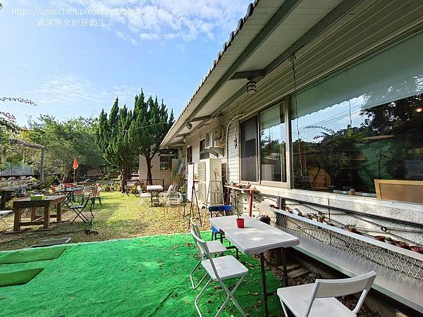用完餐完或餐前,可到庭院走走、拍照,有小池、植栽、庭園休憩桌椅,想拍些人像照也很不錯,但高爾夫練習設備不是店家的唷!請勿試身手,呵呵!