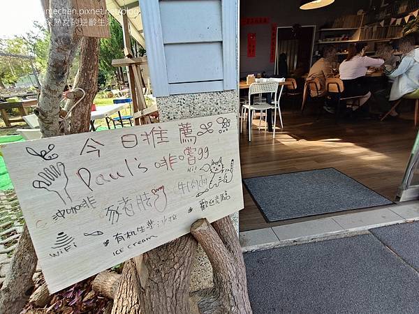 因為位在台3線約99公里處,店名取為保羅啡嚐99,也方便外來客人找路。咖啡、甜點已享用過了,期待日後能在用餐時刻造訪,嚐嚐備受好評的豬腳套餐。