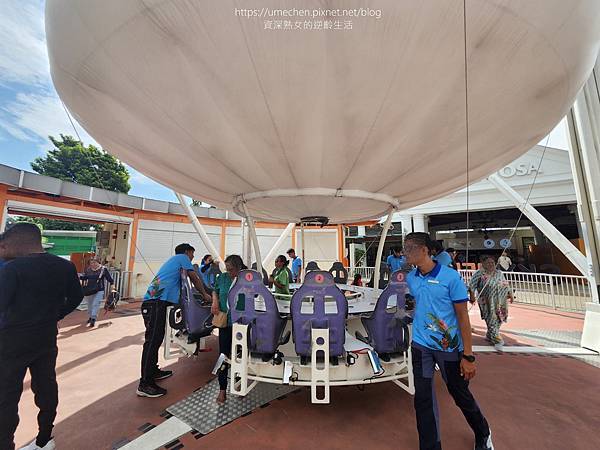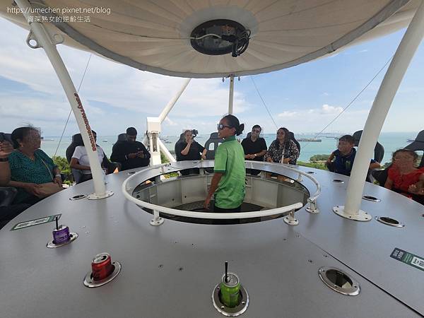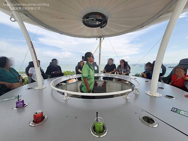 搭乘SkyHelix天空螺旋,海風徐徐吹來,喝著飲料,心曠神怡。和旁邊的斜坡滑車,是一靜一動、不同感受的遊樂活動,而且SkyHelix適合的年齡層更廣,是熟女推薦聖淘沙必體驗項目。