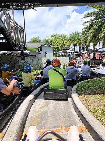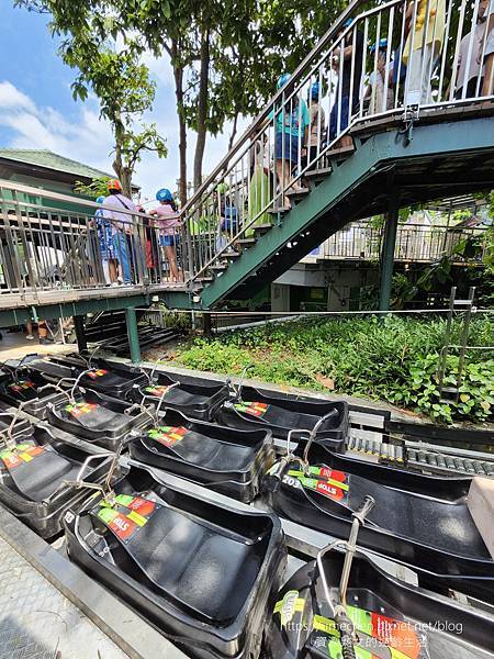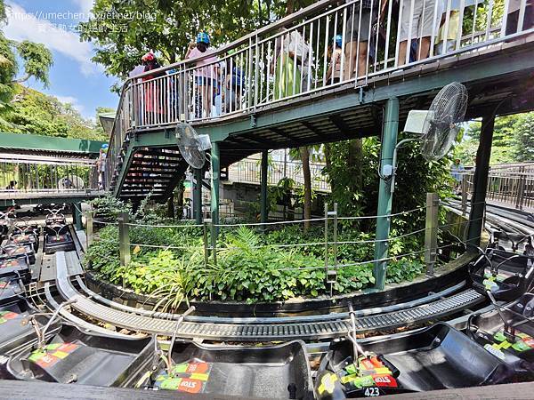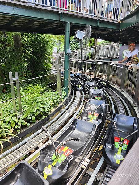 我們的票是3次票,如此循環3次,平日造訪前後花約70分鐘滑3回,大小朋友、阿公阿嬤都可以玩,我家阿孫應該會很愛這斜坡滑車,真想帶他來玩一次。
