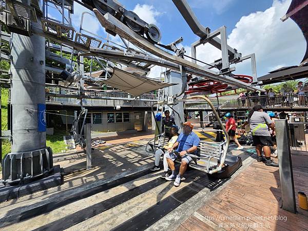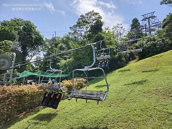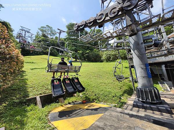 滑下去後,再搭乘空中吊椅上山,坐空中吊椅的雙腳是懸空的。