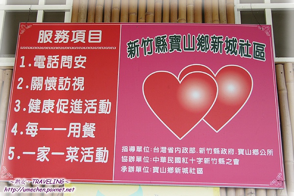 「新城社區發展協會」是由新竹縣寶山鄉新城村的村民所組織,並曾被官方評為優良社區。像這樣的社區,必須有強大的團結力、無私之愛,將當地民眾的愛鄉愛土之心緊繫,並且長久維持下去,這需要多少人的努力呀!也因為在我們一踏進這看起來不起眼的社區中心,這一看就知道是居民自己弄出來的,不怎麼有設計規劃的建築物和裝飾,卻在心中當下篤定――在這裏生活的人們,必定深愛著他們的家和這片土地。